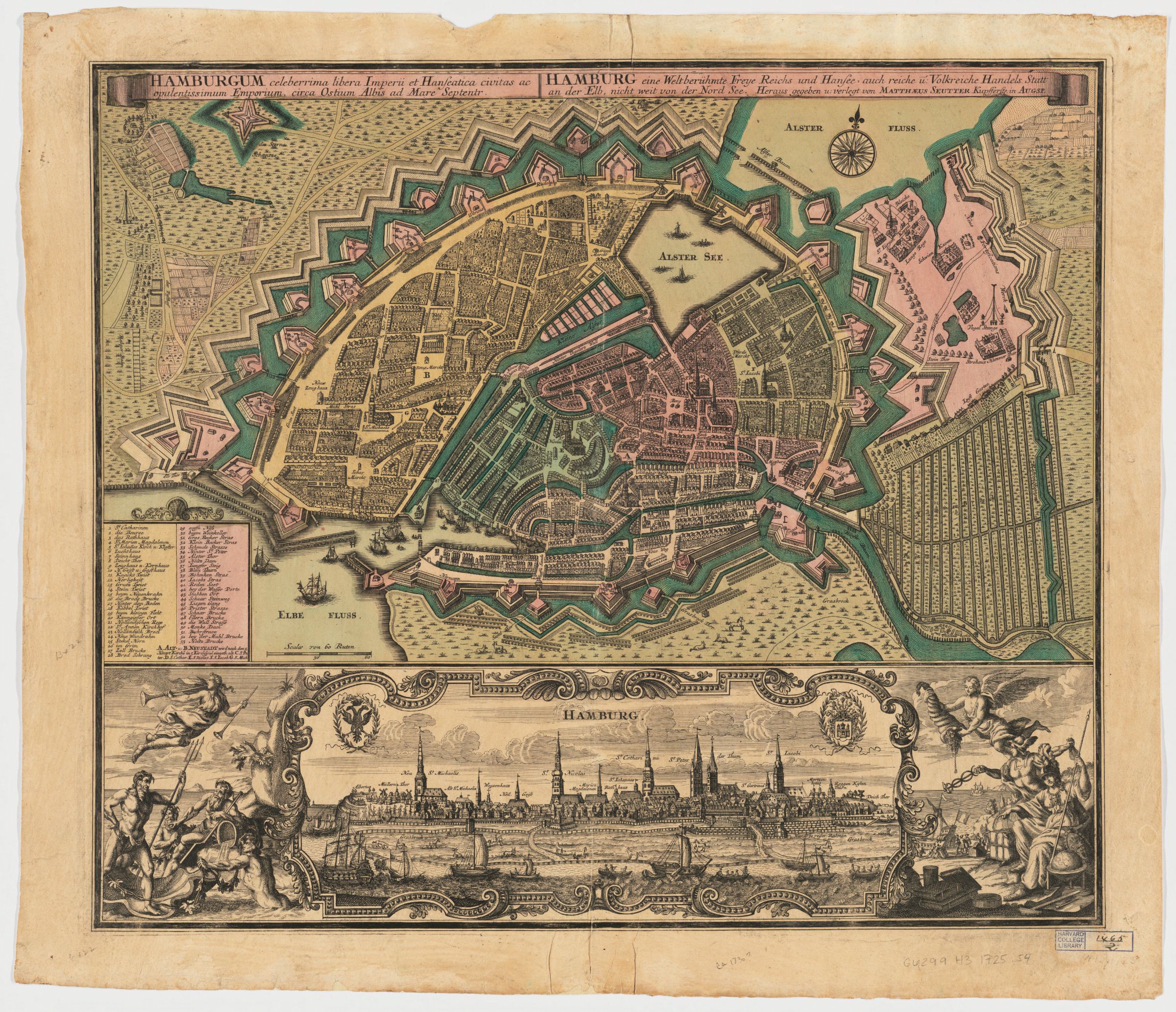 Seutter, Matthaeus, “Hamburgum celeberrima libera imperii et Hanseatica civitas ac opulentissimum emporium circa ostium Albis ad mare septentr = Hamburg eine weltberühmte Freye Reichs und Hansee- auch Reiche u. Volkreiche Handels statt an der Elb nicht Weit von der Nord See,” HIST 1952, accessed March 10, 2026, https://hist1952.omeka.fas.harvard.edu/items/show/116.