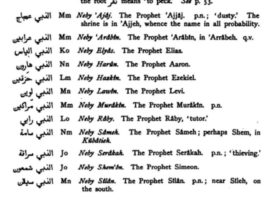 Collection of Muslim Shrines on the PEF Map which are listed under the term "Neby"